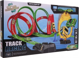 Odkrijte mega zabavo z Otroško Dirkalno Progo Mega Wyrzutnia Fire Track. Ta set združuje dve vzporedni dirkalni progi, ki omogočata dvojno dirkanje. Proga je opremljena s segmenti z ravninami za izjemno hitrost in osupljivimi 360° zankami za napete akrobatske trike.
