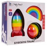 Deli se intuitivno zaskočijo drug v drugega, zato otroci hitro sestavijo barvito raketo in lahko »poletijo« v svet domišljije. Sestavljanje spodbuja načrtovanje korakov in koordinacijo oko–roka.