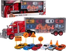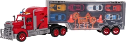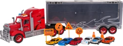 Odkrijte zabavo na poti z velikim tovornjakom, ki v prosojnem polpriklopniku prevaža 6 barvitih avtomobilčkov in komplet prometnih znakov. Zadnja vrata polpriklopnika se odpirajo in ustvarijo nakladalno rampo za gladek izvoz vozil. Po odklopu se polpriklopnik spremeni v kovček z udobnim ročajem, zato lahko otroci svoj vozni park odnesejo s seboj kamorkoli.