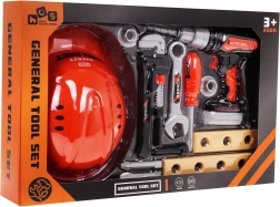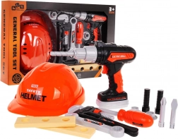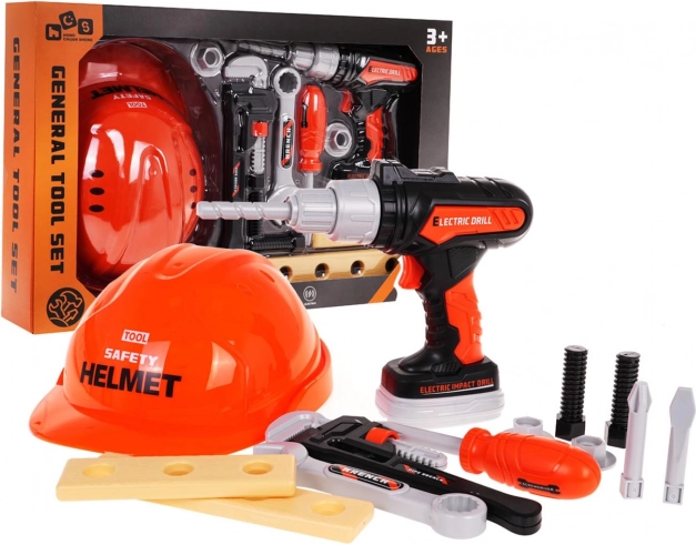 Ta realistični komplet orodja za otroke ponuja vse, kar potrebuje mali gradbinec: zaščitno čelado, električni vrtalnik/vijačnik na baterije, izvijač, ključe, vijake, matice in lesene ploščice za urjenje. Zahvaljujoč kakovostnim plastikam je komplet trpežen in varen za vsakodnevno igro.