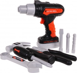 Otroški vrtalnik na 2× AA bateriji privija in odvija, ima odstranljivo baterijo in zamenljive bite za realistično igro malih obrtnikov.