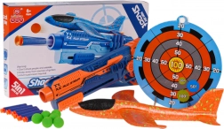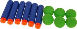 Komplet vsebuje 6 penastih puščic z oranžnimi konicami in 6 mehkih kroglic. Idealno za vadbo natančnosti brez tveganja poškodb.