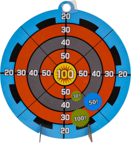 Barvita tarča z označenimi točkami vabi k igri za rezultat. Razvija zbranost, koordinacijo in fair-play tekmovanje.