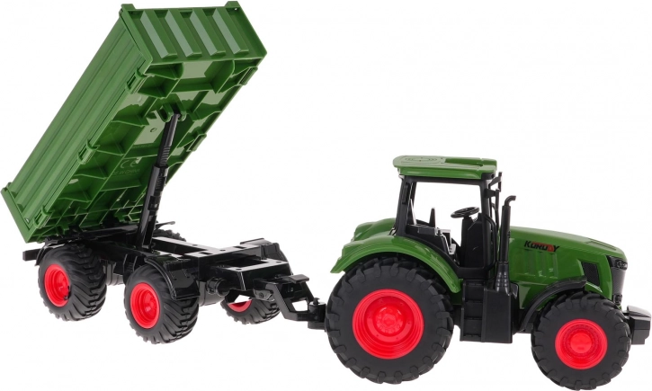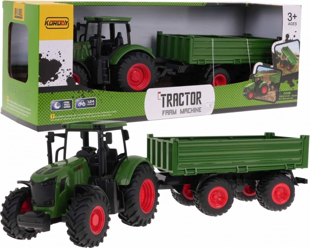 Traktor s prikolico v merilu 1:24, za otroke od 3 let naprej. Traktor je zelo realistično poustvarjen po pravem kmetijskem stroju, z natančnimi detajli. Izdelan je iz najkakovostnejše plastike v živih barvah. Ima velike gumijaste pnevmatike za dober oprijem. Prikolico je mogoče odklopiti, bočne stranice spustiti in zadnjo stranico dvigniti. .. Funkcije traktorja: . - primeren za otroke starejše od 3 let, .- izdelan iz najkakovostnejših materialov, .- izdelan v merilu 1:24, .- gibljivi elementi: prikolica (zgoraj, spodaj), - spuščene bočne stranice in dvignjena zadnja stranica, .- gumijaste pnevmatike, .- realistična reprodukcija, .- gibljivo prosto kolo. . |