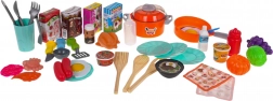 Priloženih je do 42 dodatkov – lonci, ponve, pripomočki, posodje in imitacije živil. Otroci urijo fino motoriko, komunikacijo in osnove obedovanja. Kuhinjica je idealna za samostojno in skupinsko igro.