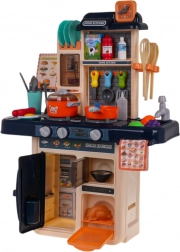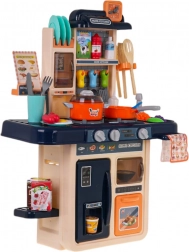 Ta kakovostna plastična kuhinjica v živih barvah otrokom prinaša pristno zabavo pri kuhanju. Osvetljeni gorilniki z resničnimi zvoki cvrenja in vrenja, realistična para in tekoča voda iz funkcionalne pipe spodbujajo čutno zaznavo in domišljijo. Odpirajoči se hladilnik, pečica in mikrovalovna pečica ponujajo dovolj prostora za igro in shranjevanje.