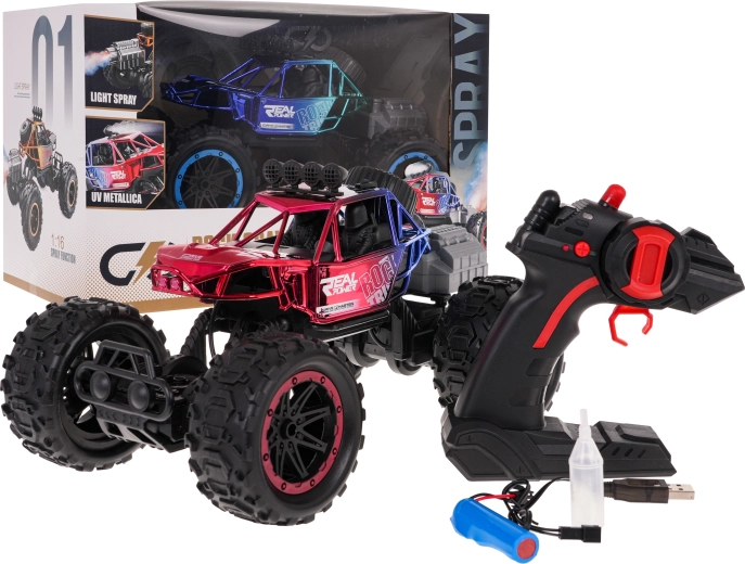 Po polnjenju rezervoarja z vodo avto med vožnjo ustvarja nežno vodno paro, ki z LED osvetlitvijo deluje kot realističen dimni učinek. Upravljanje na frekvenci 2,4 GHz zagotavlja stabilen signal brez motenj.