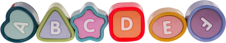 Na eni strani strešni ksilofon s paličico, na drugi strani razvrščanje 6 oblik za razvoj motorike in logike. Del kompleta je izvlečni ročaj za prenašanje.