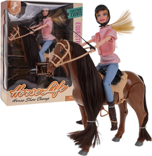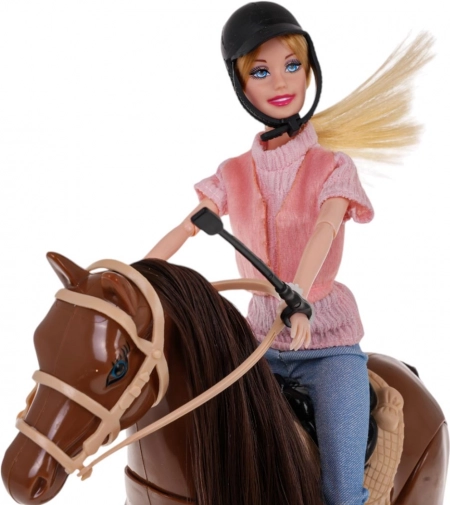 Ta privlačen komplet povezuje svet punčk in konjev – idealen za male ljubitelje jahanja. Lutka ima gibljive roke, noge in glavo ter čudovite dolge lase. Konjiček deluje na 3× AA baterije (v paketu) in se zna zagnati naprej, premikati z glavo ter rezgetati, zato je igra izjemno avtentična.
