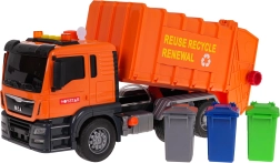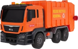 Oranžen smetarski avto z zvočno funkcijo + dodatki . |
