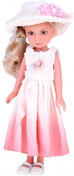Ta punčka ima dolge blond lasje spletene v elegantno kito in je oblečena v lično koktajl obleko v odtenkih roza s srebrnimi naramnicami. Okrasi jo nežen cvet in nosi kremno bolero. Na glavi ima stilen krem klobuk, ki ji doda čar in eleganco, in na nogah bele čevlje. Izgleda preprosto ljubko!