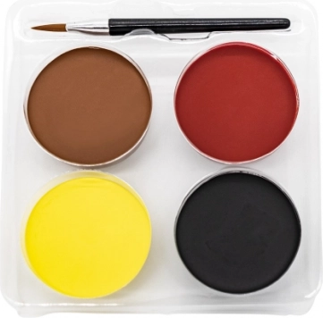 Preprosto zmešajte barve z vodo, da dosežete gladko konsistenco, ki se zlahka nanaša. Make-up zadostuje za približno 28 uporab. Zlahka ga odstranite s kože z vodo. Pozor, lahko povzroči alergijsko reakcijo, zato priporočamo, da barvo najprej preizkusite na majhnem delu kože.