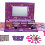 Odkrijte ustvarjalni svet lepote s tem otroškim kompletom za ličenje v zložljivem etuiju z ogledalcem. Vsebuje senčila za oči, glosse za ustnice, čopiče, bleščičaste lake ter nalepke in umetne nohte. Kozmetika je enostavno odstranljiva z vodo, izdelana iz varnih materialov in idealna za otroke od 3 let naprej.