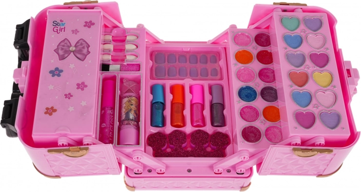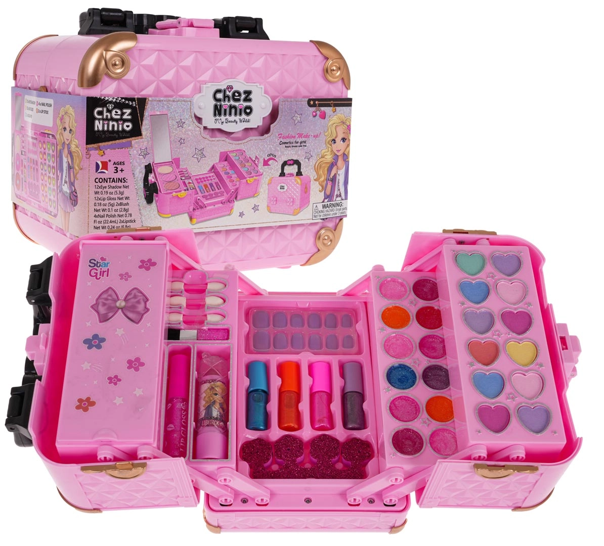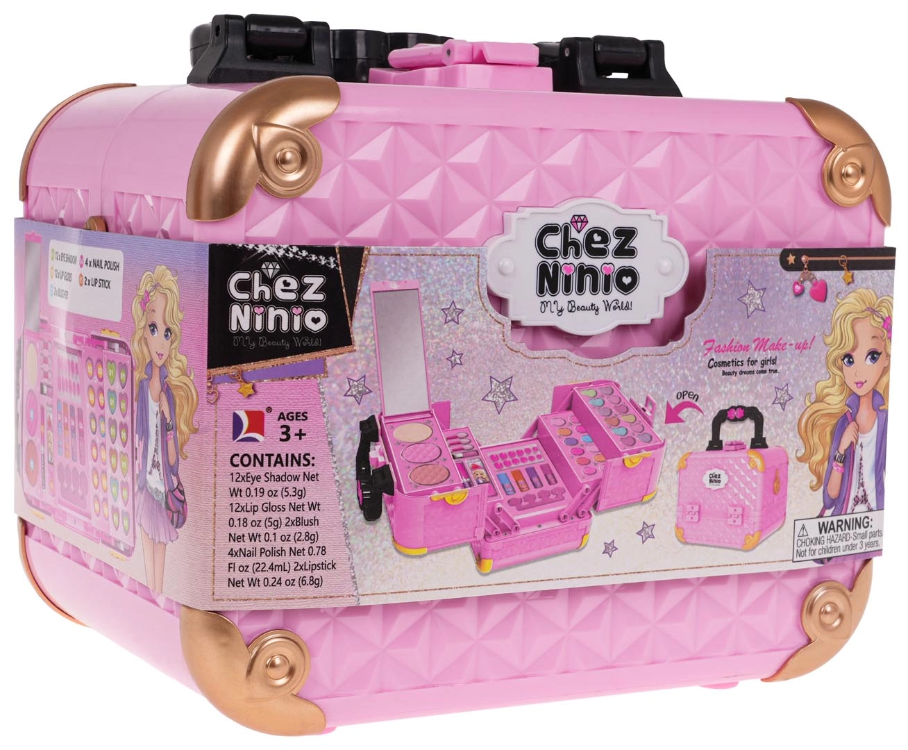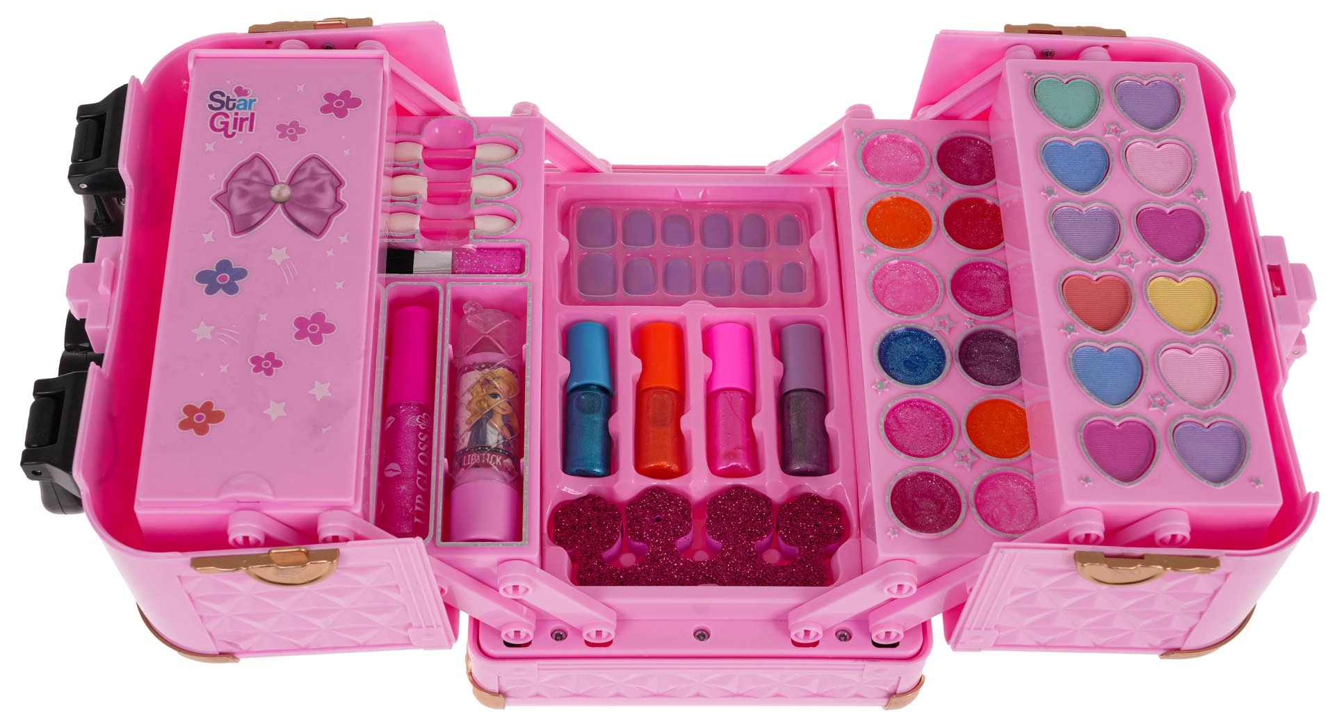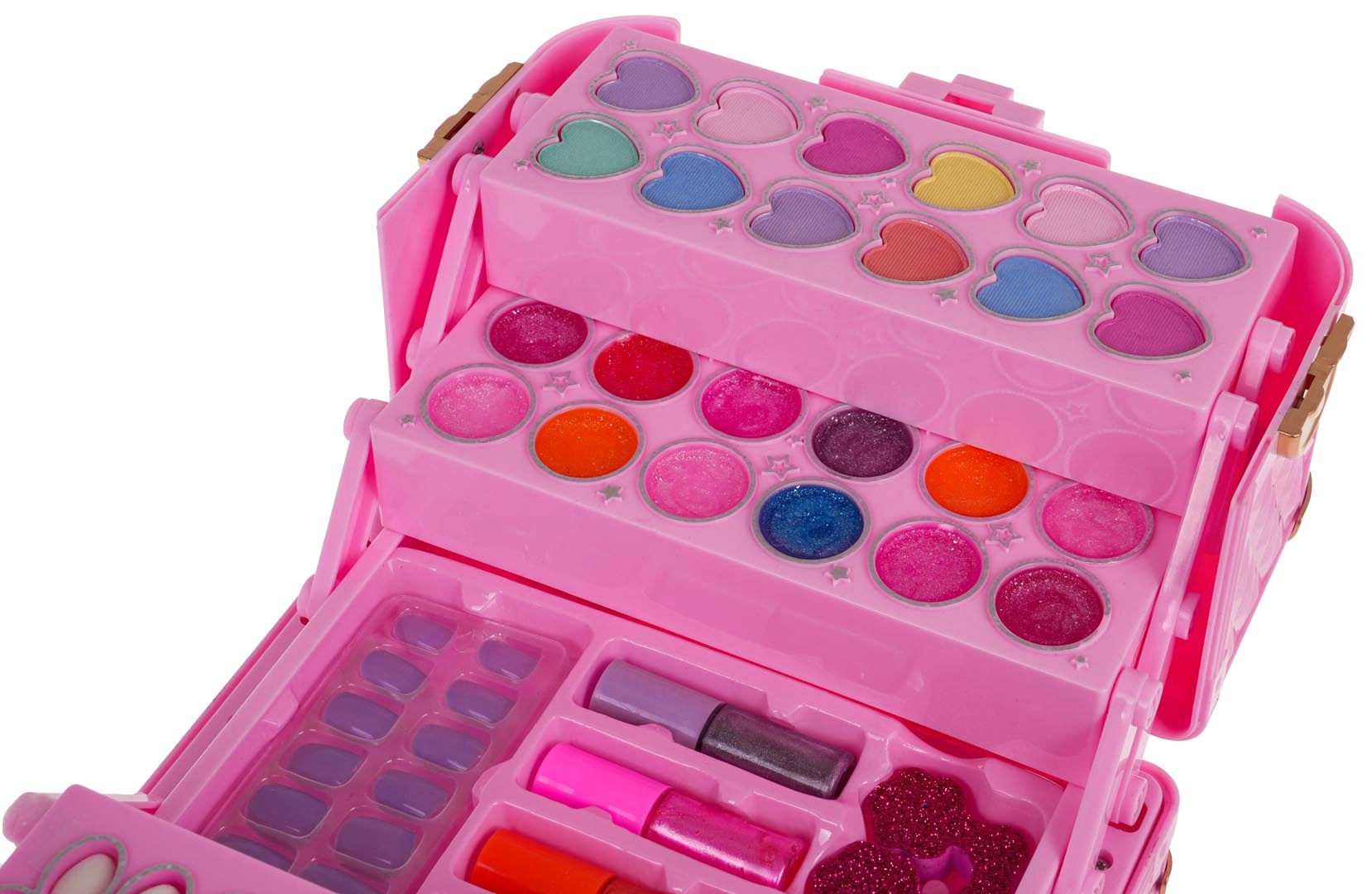 Privoščite otrokom ustvarjalno zabavo z bogato opremljenim kompletom za ličenje v prenosnem kovčku. Otroci lahko varno preizkušajo prvo ličenje, razvijajo domišljijo in fino motoriko. Vse komponente so zasnovane za otrokovo kožo in jih je mogoče zlahka odstraniti z vodo.