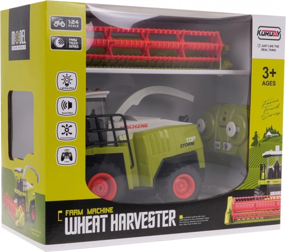 Ta podrobno izdelan RC kombajn v merilu približno 1:24 zvesto posnema pravi stroj: ima delujoče luči na kabini, avtentične zvoke in premični izpustni žleb, ki ga je mogoče vrteti in nagibati. Heder je odstranljiv, rotirajoči elementi pa ustvarjajo realističen vtis žetve.