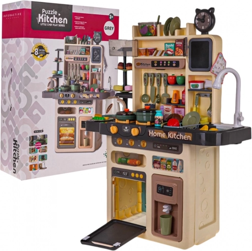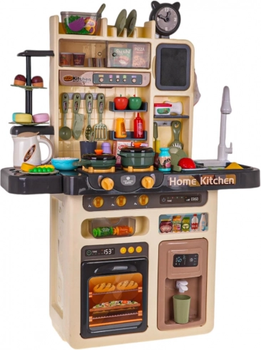 Ta prostorna otroška kuhinjica spremeni sobo v majhno kulinarično delavnico. Otroci bodo uživali v realističnih elementih, kot so osvetljeni gorilniki z zvoki pečenja in kuhanja, para iz enega gorilnika in pipa s tekočo vodo. Odprite pečico, shranite živila v hladilnik z dozirnikom vode, zavrtite krmilne gumbe in prižgite napa z glasbenim panelom.