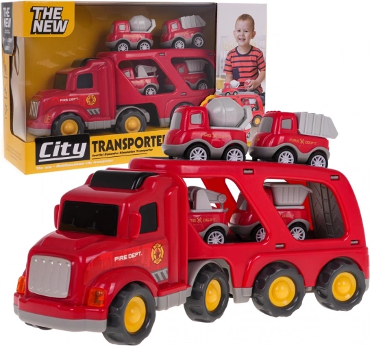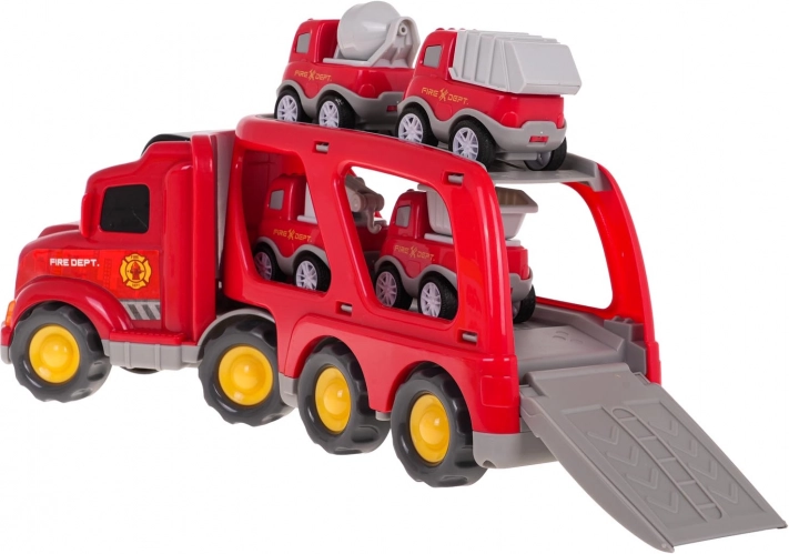 Set gasilskih vozil s tovornjakom – prevoznik in 4 avtomobilčki z lučmi in zvoki