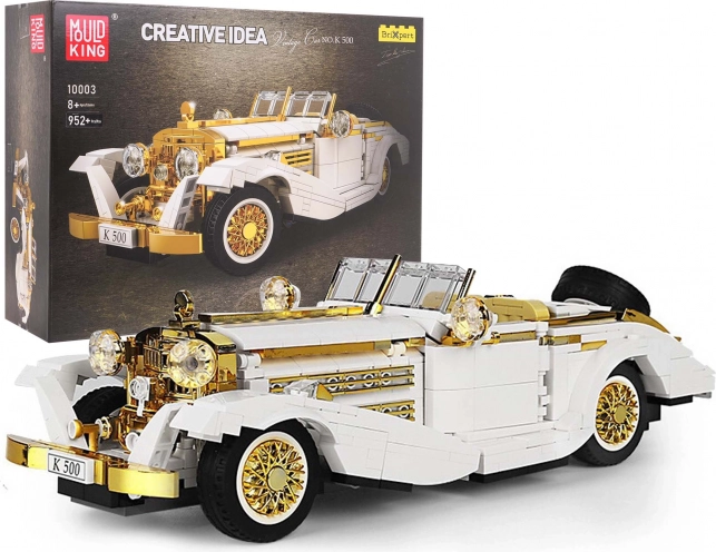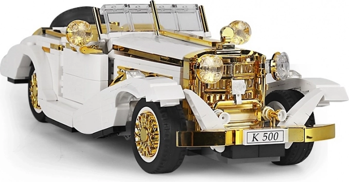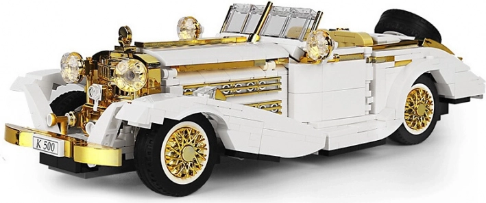 Sestavite si stilski retro avtomobil iz kompleta z 952 kosi v merilu 1:16. Model ponuja odpirajoča se vrata, pokrov motorja in prtljažnik, funkcionalno krmiljenje povezano s kolesi ter zlate kromirane detajle. Idealno za otroke od 8 let naprej, razvija fino motoriko in prostorsko predstavo. Priložen je slikovni priročnik.