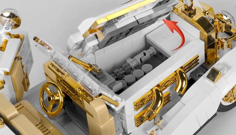 Model je premišljen do podrobnosti: odpirajoča se vrata, pokrov motorja in prtljažnik dopolnjujejo zlate kromirane prvine, ki dajejo razkošen videz. Komplet je primeren od 8 let naprej in spodbuja potrpežljivost, spretnost in ustvarjalnost. V paketu najdete pregleden slikovni priročnik, s katerim sestavljanje zlahka obvladajo tudi začetniki.