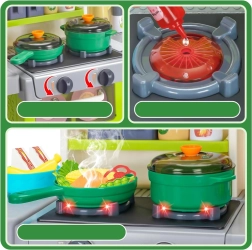 Igranje s to kuhinjo je izjemno zabavno zaradi funkcij, kot so osvetljeni gorilniki, zvoki kuhanja in učinek pare, ki se dviga iz loncev, kar posnema pravo kuhanje. Otroci lahko tudi “pomivajo” lonce z uporabo vodovodne pipe, kar igri doda še več pristnosti.