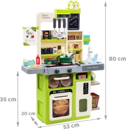 Ta interaktivna kuhinja spodbuja razvoj otroka, uči osnovnim veščinam, kot so postrežba, načrtovanje, organizacija in zdrave navade. Odlična je tako za samostojno igro kot za skupinsko igro.