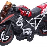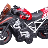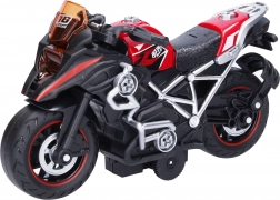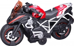 Doživite vznemirjenje vožnje z našim vijakastim motorjem v rdeči barvi! Opremljen je s svetlobnimi in zvočnimi učinki, ki se aktivirajo s pritiskom zadnjega dela navzdol, kar prinaša zabavo za vsakega malega dirkača.