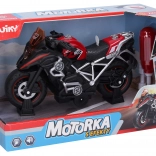 Naš rdeč vijakasti motor je popolna igrača za vsakega malega ljubitelja hitrih koles in adrenalina. Zasnovan je za neskončne ure zabave: