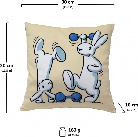 Mehka blazinica z zajčkoma BOB IN BOBEK in motivom uteži bo razveselila otroke doma in na poti. Mikrovelur, votlina vlakna, pranje pri 30 °C, ročno izdelano v ČR, mera 30 × 30 cm.