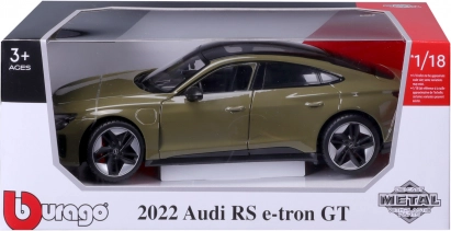Odkrijte natančno izdelan zbirateljski model v merilu 1:18, ki zvesto ujame dinamičen videz in športno DNK vozila AUDI RS e-tron GT (2022). Kovinska izvedba, pristne podrobnosti in lak v odtenku Tactical Green bodo razveselili vsakega ljubitelja avtomobilov in znamke BBURAGO.
