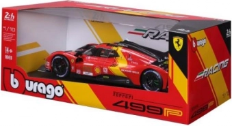 Ikoni prototip FERRARI 499P v vrhunski izvedbi znamke BBurago prinaša realistično obdelavo, ki poudarja dirkaški DNK vozila: izrazite linije, zadnje krilce, zajeme zraka in natančne replike sponzorskih logotipov. Kovinske dele dopolnjujejo plastični detajli za maksimalno zvestobo originalu.