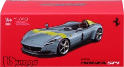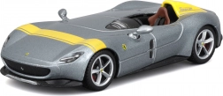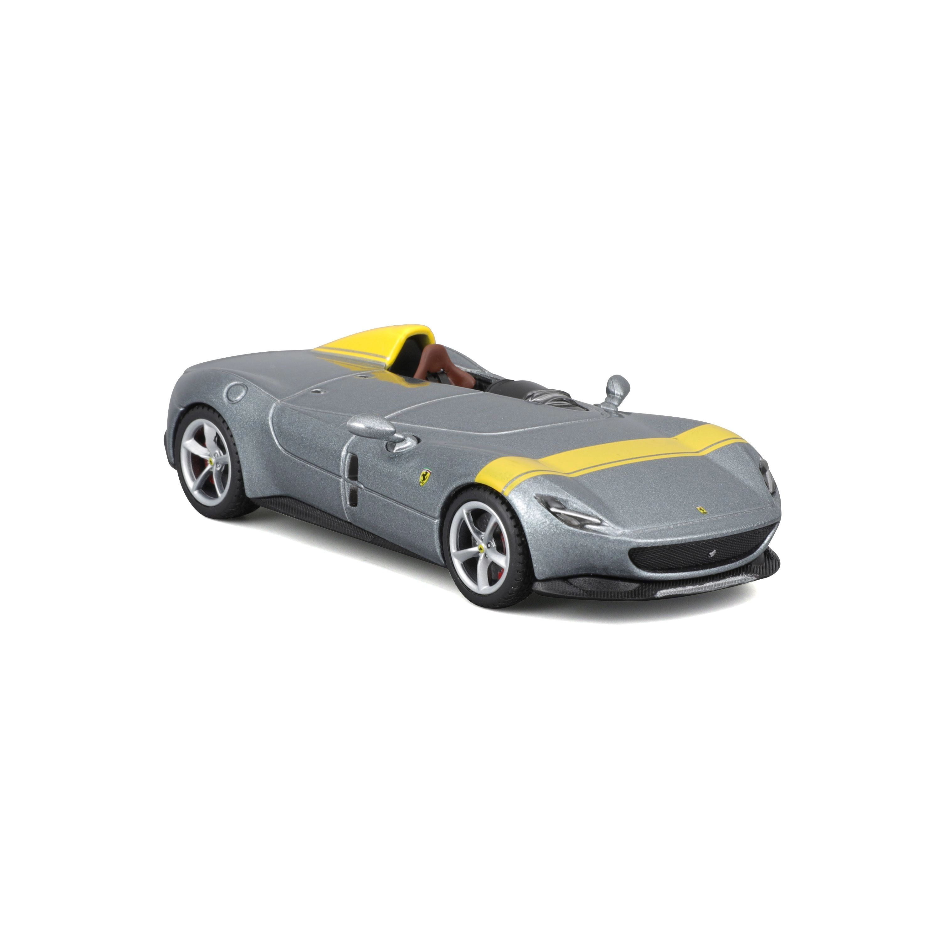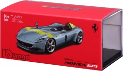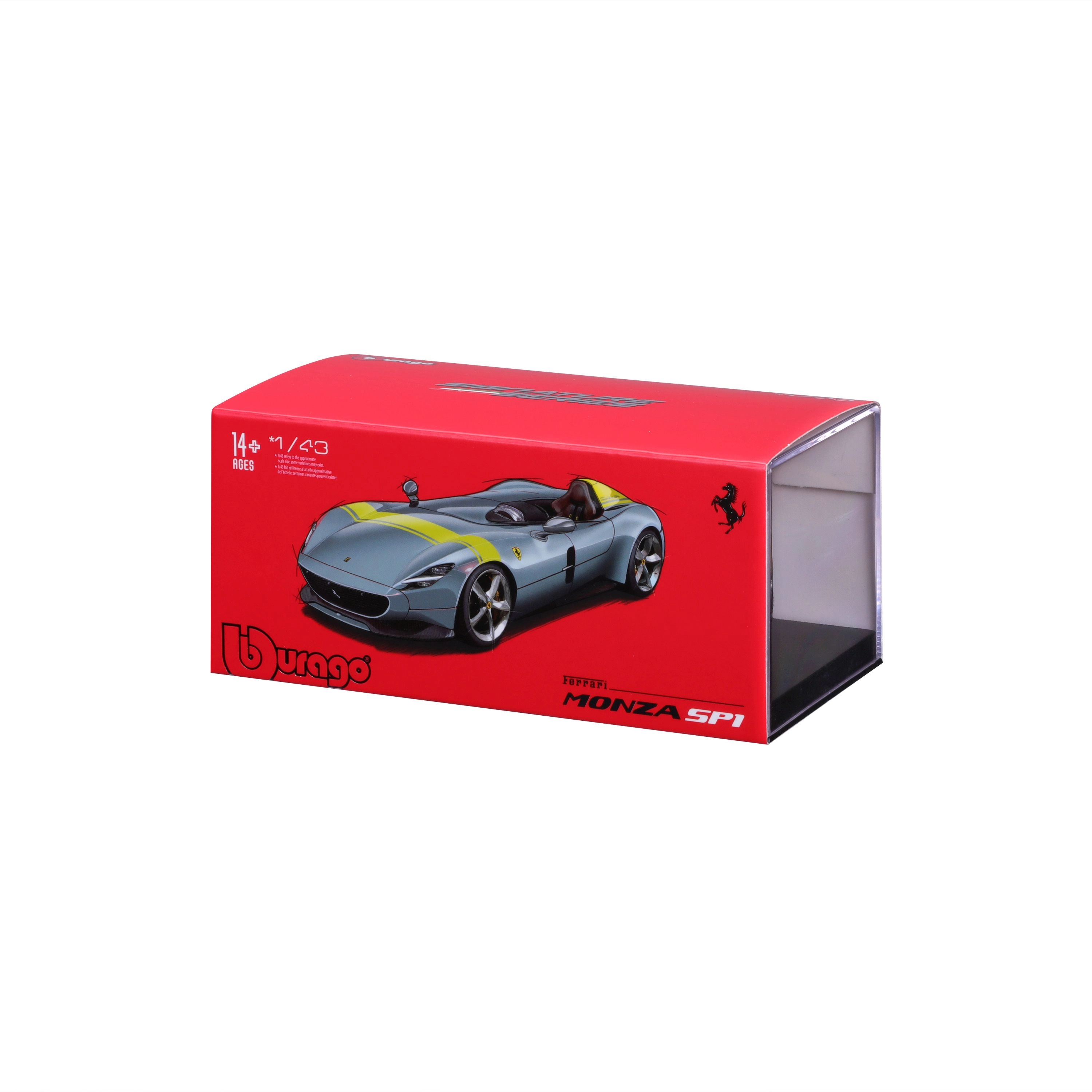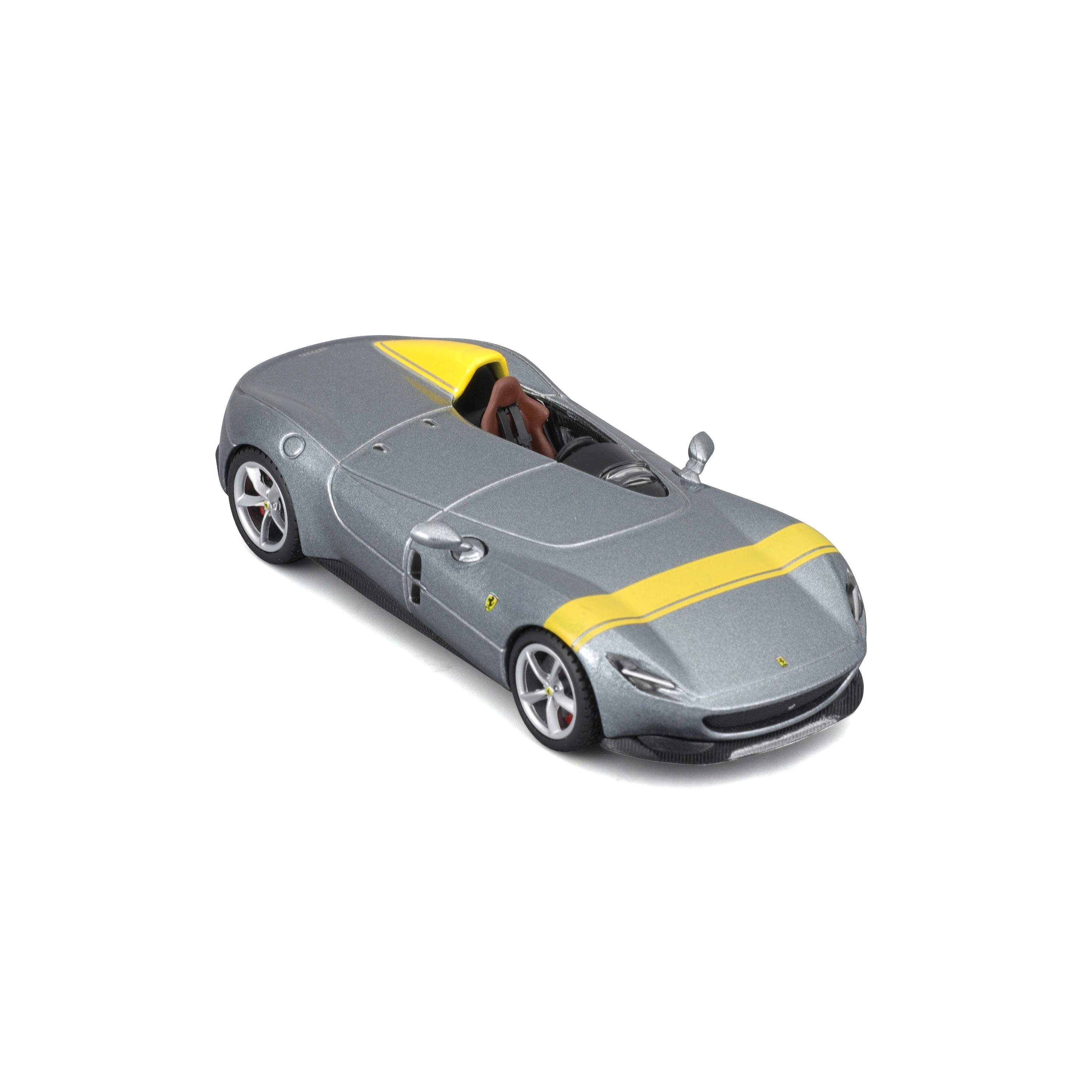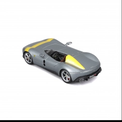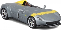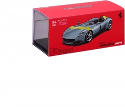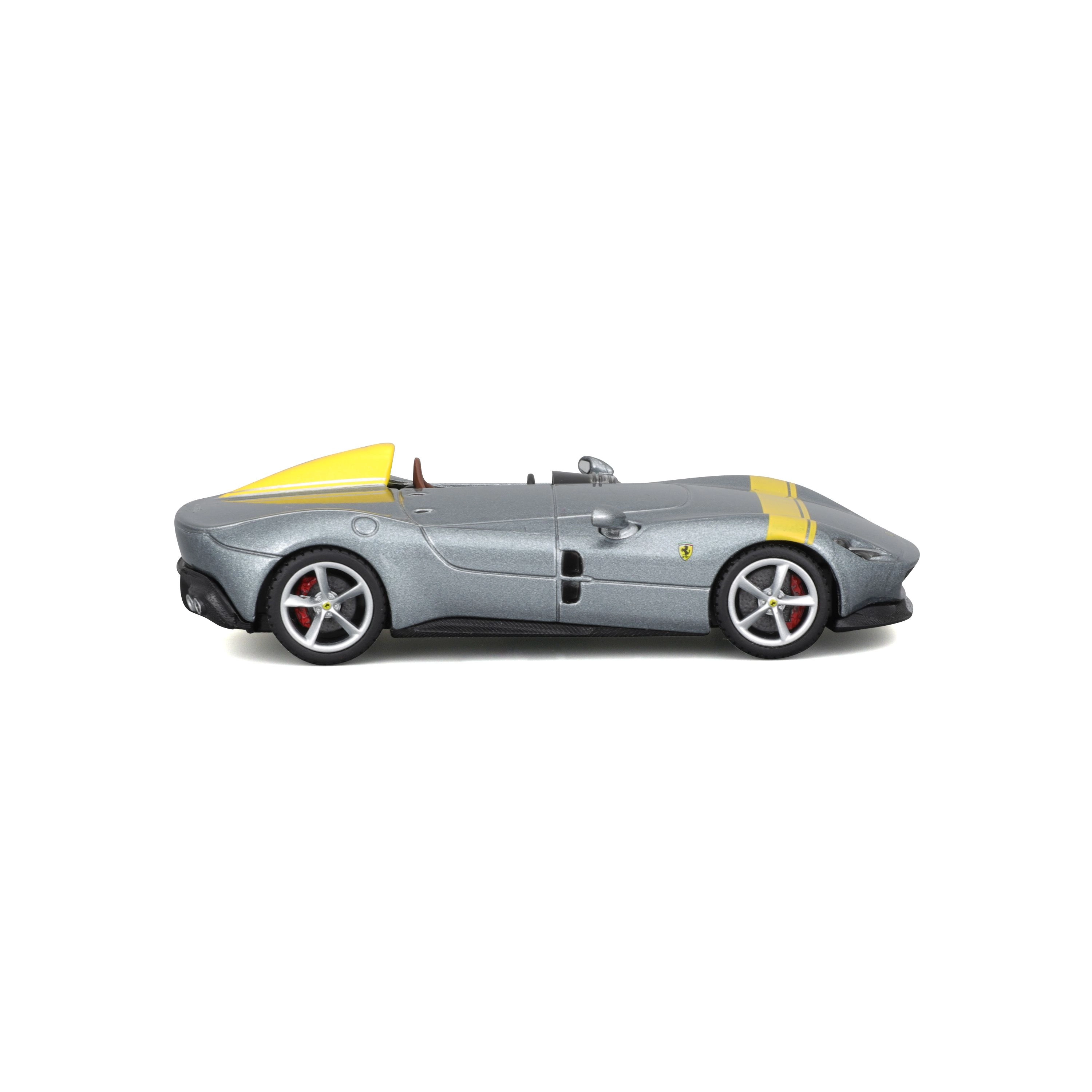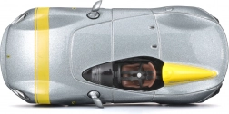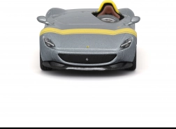Ta podrobno izdelan kovinski model BBURAGO v merilu 1:43 zvesto ujame ikonični enosed Ferrari Monza SP1. Srebrna kovinska barva z rumenimi poudarki, realistična platišča, zavorne čeljusti in natančno oblikovana ogledala poudarijo premium videz, ki izstopa na vsaki polici.
