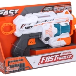 Uživajte v obilici zabave s pištolami na penaste naboje. Ta pištola je opremljena z 12 naboji iz mehkega penastega materiala, kar zagotavlja varno uporabo za vaše otroke. Preprosto napenjanje omogoča lahko upravljanje in hitro akcijo. Pištola ima slikovni priročnik za uporabo na sprednji strani embalaže, kar olajša sestavljanje in uporabo.