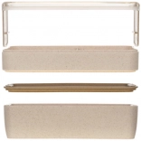 Komplet vsebuje tudi pribor iz pšenične slame. Ti praktični pripomočki vsebujejo žlico in vilico, ki ima valoviti rob za uporabo kot nož. Pribor se enostavno pospravi v kosilo, kar zagotavlja, da ga imate vedno pri roki.