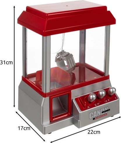 - Nadzor in MEHANIZEM lovljenja bonbonov - Stroj za lovljenje bonbonov deluje kot pravi avtomat. Na sprednji strani igrače se nahajajo trije joysticki iz trpežnega PS, ki omogočajo popoln nadzor nad krempljem. Prvi joystick premika mehanizem naprej in nazaj, srednji desno in levo, tretji pa spušča in dviga jekleni krempelj, pritrjen na portal z robustno verigo z ušescem. Celoten proces lovljenja bonbonov je izjemno gladek in realističen, veselje ob ulovu najljubših dobrot pa še povečuje zabavno vznemirjenje. Po ulovu bonbona se bonbon spretno odloži v rdeče osvetljeno odprtino, kar igri doda še dodaten pridih zabave. .