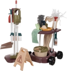 VELIK KOMPLET PRIBORA - Komplet je izjemno bogat z najrazličnejšimi pripomočki, ki odlično posnemajo prava čistilna orodja. Na voljo so mop z vedrom in cedilom, mikrovlaknena metlica za prah, gobica, krpica, opozorilna tabla in različna čistilna orodja - drgnilna krtača, čistilna gobica in mikrovlaknena krpa.