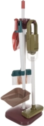 Stojalo za pripomočke - Del kompleta je tudi stabilno stojalo s široko osnovo, ki sprejme krtačo za pomivanje posode, metlico, smetišnico in veliko metlo s pokončno smetišnico. Na stojalo je mogoče obesiti tudi sesalnik, kar omogoča, da vso opremo enostavno shranite na enem mestu. Tako se otroci učijo organizirati in pospravljati svoje delovno mesto. Vsi deli so izdelani iz kakovostnega in vzdržljivega PP materiala, ki zagotavlja trpežnost in varnost pri igri.