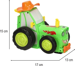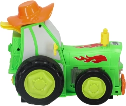 Traktor predvaja veselo glasbo in zelo enostavno se upravlja s pomočjo kontrolerja.