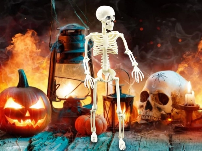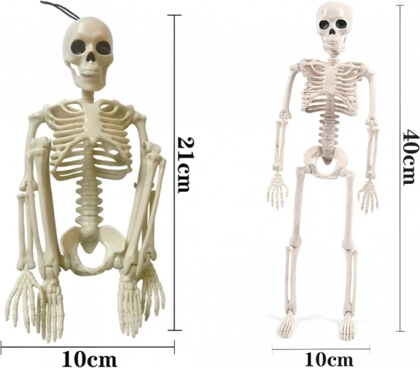 To viseče plastično okostje velikosti 40 cm navduši s svojim realističnim videzom in enostavno namestitvijo. Ima praktično viseče uho/vrvico, zato ga v nekaj sekundah namestite na vrata, strop, okno ali na vrt. Verni detajli kosti vsaki sceni dodajo pravi srhljivi pridih.