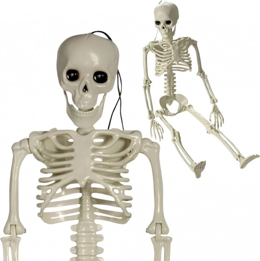 Realistično viseče okostje višine 40 cm je idealno za okrasitev za Halloween, zabave in tematske dogodke. Zahvaljujoč kavlju in nizki teži ga zlahka obesite kjerkoli, podrobno izdelane kosti in sklepi pa ustvarijo avtentičen, strašljiv učinek. Izdelano je iz trpežne plastike v naravno beli barvi, primerno za notranjo in zunanjo uporabo.