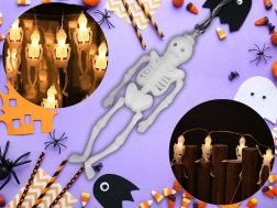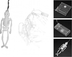 Slogovna svetlobna dekoracija, ki v hipu spremeni notranjost ali zaščiten zunanji prostor v skrivnostno halloweensko okolje. Vsak izmed 10 miniaturnih okostnjakov ima samostojno LED diodo, zato je svetloba enakomerno razporejena po celotni dolžini verige. Toplo bela barva ustvari prijetno, a vendar strašljivo žarenje.