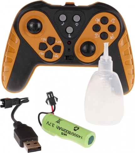 Bagr je napajan z baterijo tipa 3,7 V 800 mAh (je del paketa), medtem ko daljinski upravljalec zahteva 2 × AA bateriji (nista del paketa). Paket vsebuje tudi polnilni USB kabel in plastično pipeto za vodo za dimne učinke.