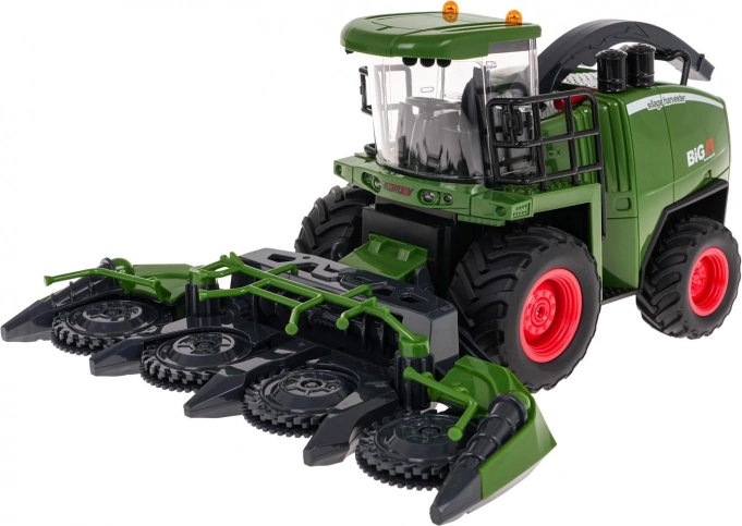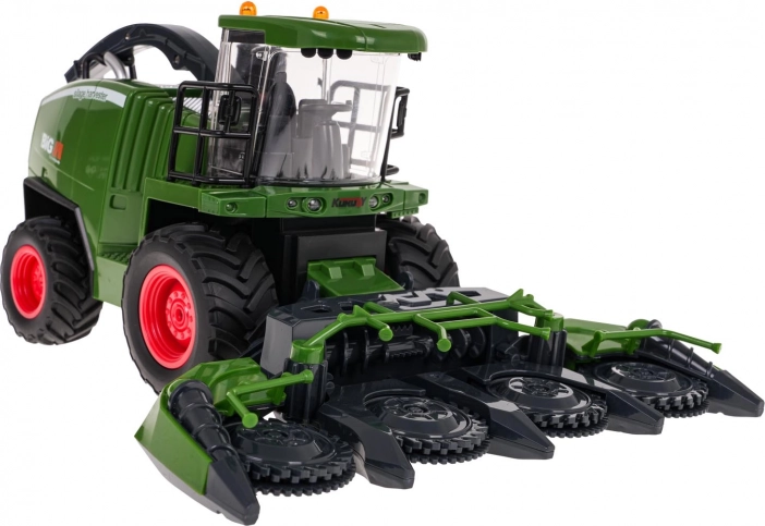 Odkrijte podrobno izdelan RC kombajn, ki zvesto posnema pravi kmetijski stroj. Dve zamenljivi žetveni mizi za žetev žita in koruze se enostavno namestita, vrteči se diski se vrtijo med vožnjo, 360° vrtljiva izpustna cev pa igri doda pristnost. LED luči na kabini in zvoki motorja ter vzvratne vožnje se lahko kadar koli izklopijo z upravljalnika.