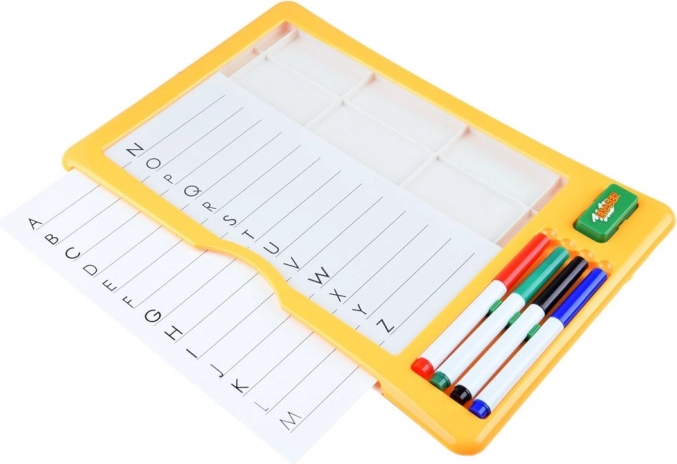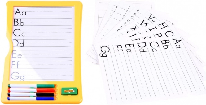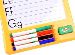 Ta izobraževalni komplet je zasnovan za razvoj fine motorike in pomaga otrokom na zabaven način osvojiti pravilne oblike črk. Tabla s pralno površino zagotavlja, da jo lahko otroci večkrat uporabljajo brez skrbi zaradi napak.