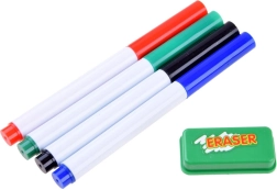 Del kompleta so posebni flomastri, ki jih je mogoče zlahka obrisati – idealno za ustvarjalno in ponavljajoče pisanje. Izdelek je primeren za uporabo doma in v vrtcu ter je namenjen otrokom, ki se šele začenjajo učiti pisati.