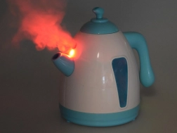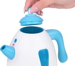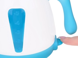 Posoda je opremljena z gumbom, ki začne simulacijo kuhanja vode z realističnim zvokom in rdečo LED indikacijo.