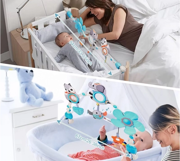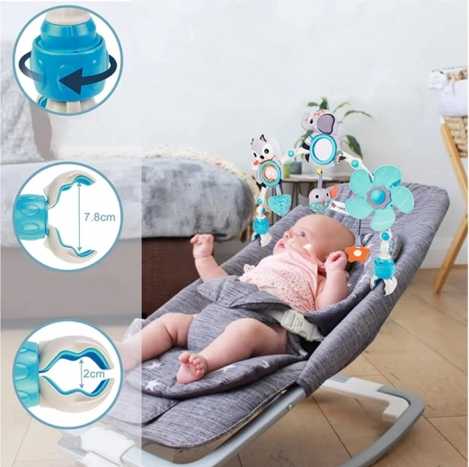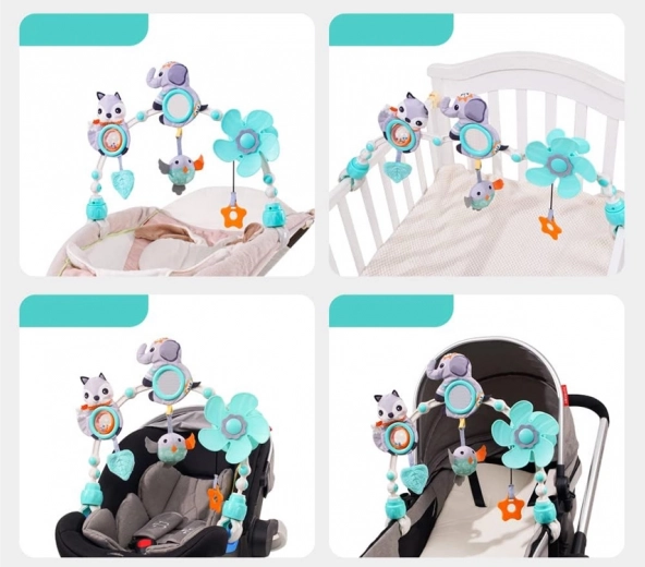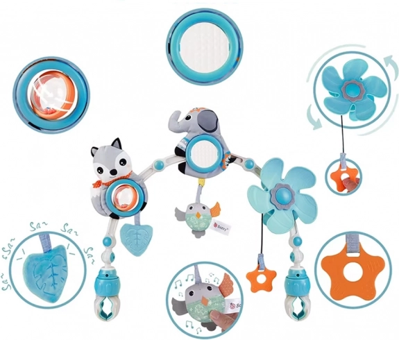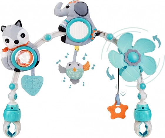 Ta čudovit in funkcionalen viseči lok je idealen dodatek ne le za posteljico, temveč tudi za voziček ali avtosedež. Ima barvite in zanimive elemente, ki pritegnejo otrokovo pozornost, pomagajo ga pomiriti in prebuditi njegovo radovednost. Viseči lok vključuje elemente, kot so grizalo, zvočne in vrtljive komponente. Ima tudi močne in prožne sponke, ki olajšajo namestitev na različne površine.