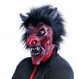 Dodajte svoji preobleki peklensko vzdušje s to realistično masko hudiča za odrasle. Lateks maska v rdeči barvi s črnimi lasmi, rogovi in grozečimi zobmi bo v hipu spremenila vaš videz. Odlična izbira za Noč čarovnic, pust in tematske zabave.