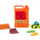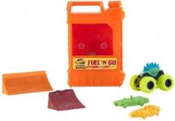 Potopite se v epske pustolovščine z igralnim setom Hot Wheels Monster Trucks Kanister Fuel 'N Go! Ta skrbno zasnovan set v obliki bencinskega kanistra se odpre v mini areno za akrobacije in prostor za popravila. S priloženim vozilom Motosaurus v merilu 1:64 se lahko zlahka zapeljete na rampo in podrete dva zmečkana avtomobila. Dodatna vozila in tovornjaki povečajo raven uničenja! (Vsebuje dva zmečkana avtomobila. Dodatna vozila na slikah se prodajajo ločeno.)