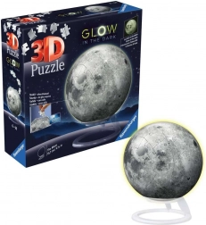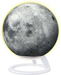 Ravensburger 3D svetleča sestavljanka Luna je odlično prepletanje zabave in dekoracije. Sestavljanka vsebuje 73 koščkov, ki se zahvaljujoč posebni tehnologiji EasyClick enostavno in natančno povežejo. Po sestavi tvorijo trdno in stabilno kroglo.