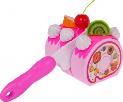 Ta bogato opremljen rožnat rojstnodnevni komplet spremeni sobo v malo slaščičarno. Šestdelna torta, povezana z ježkom, se lahko »reže« s priloženim nožem ter okrašuje s sadjem, piškoti in ljubkimi dodatki. Velika svečka se po pritisku zasveti v dveh barvah (baterije RL41 so priložene), kar zabavi doda čarobno vzdušje.
